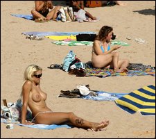 A sunny beach turns into a sex games for many naturists couples